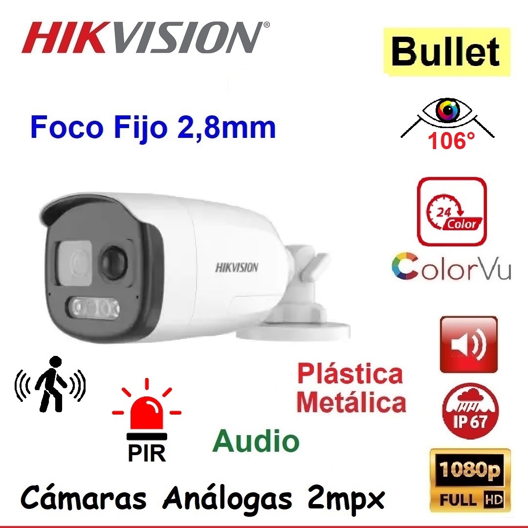Cámara 2 MPX Led 2,8 IP67 Bullet para Interior o Exterior Intemperie-2CE12DF3T-PIRXOS